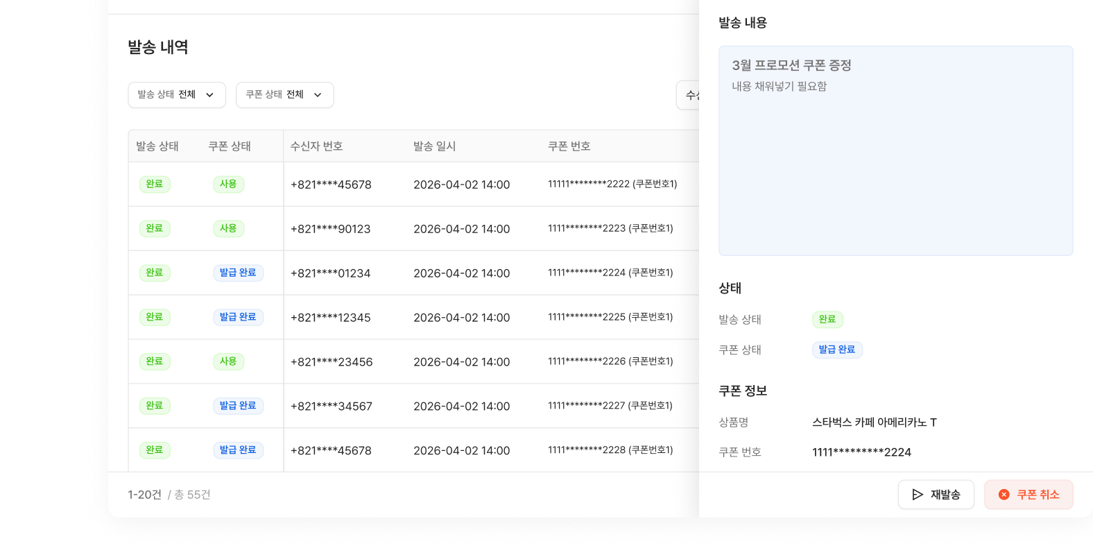 발송 현황, 쿠폰 사용률, 금액 통계까지